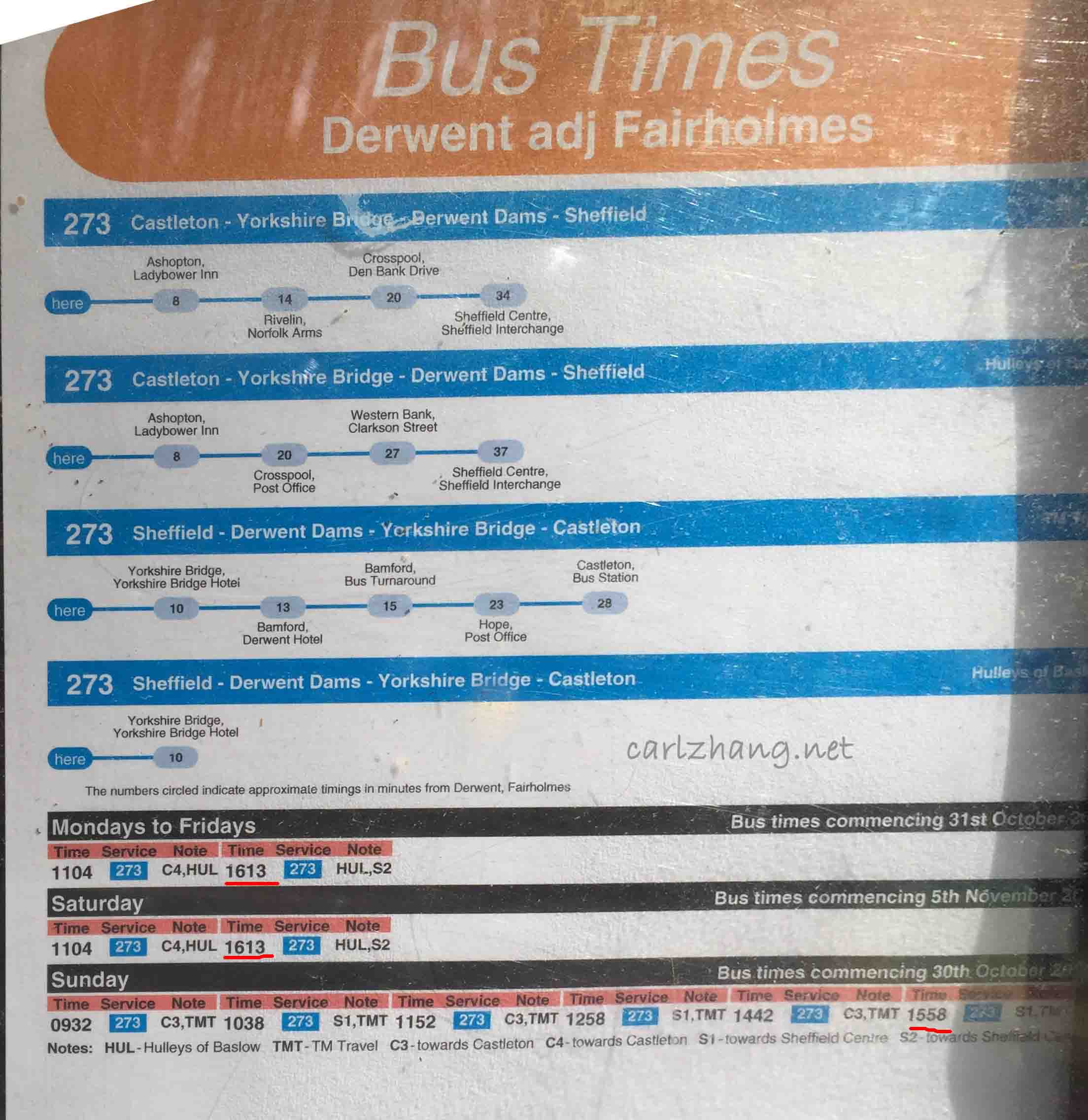 到了以后找到D2,乘坐273路公交车,上车的时候跟司机说下去 “Fairholmes”,然后告诉他是学生,£2.5来回(车票千万别弄丢哈,回来还要用呢)。周一到周五,每天10点27有一班车,周六除了10点27的那班,还有12点27的一班车。周日的票价和时间跟之前的都是不一样的, 来回车票一共£4.9(学生),时间是11点20一班车,因为跟之前几天的运营公司不一样,所以票价就不同了。