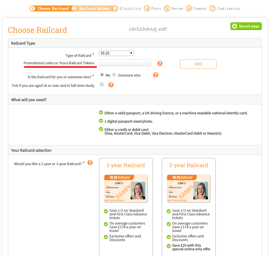 注意我划红线的这个地方,这个是用来输入可以给你的这张Railcard打折的code的。如何获取code?