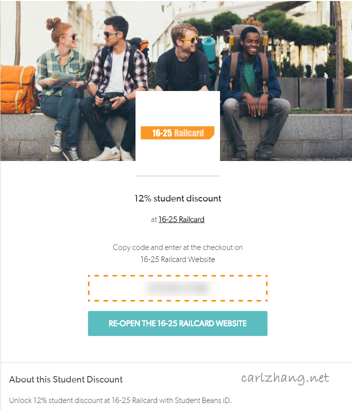 进入网站以后点Sign up,注册过程中会要求你输入你的学校和你的学校邮箱,然后他会发一封邮件到你的学校邮箱,打开以后点击链接确认就好了,然后找到16-25 Railcard,点GET CODE: